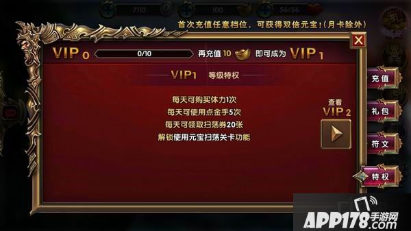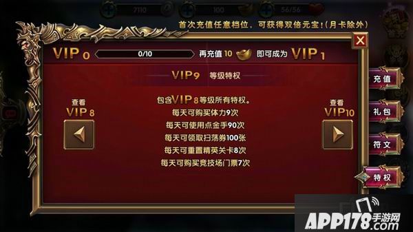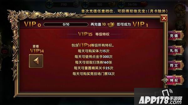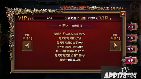 以上就是小编带来的无双西游VIP特权一览,玩家欲知更多游戏内的攻略与资讯,敬请关注APP178手游《无双西游》专区。