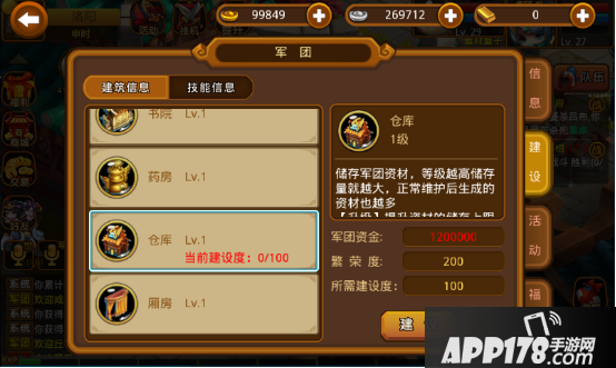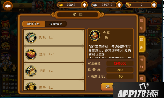 规模是军团最基本的,只有提升这个,其他建筑才能提升;金库因为影响资金存储上限,所以当军团建筑升级所需资金比较高时,就需要升级这个建筑了;书院影响技能研究速度,如果军团以研究技能为主,这个建筑是必须升级的;药房影响2级药产量,这个适当升级即可,保证2级药的产量能满足军团成员需求,即使不足也可以去交易市场购买;厢房是最重要的建筑,毕竟人多力量大,建立军团后一定要优先升级这个建筑。本人建议建筑升级顺序如下:厢房→金库→规模→书院or药房
