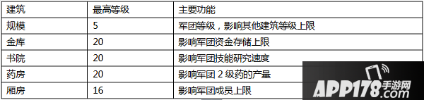 军团建筑分为5个,具体功能如下: