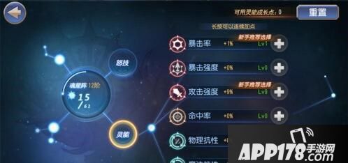 魂星阵可以使用魂能点升级,玩家可以从无垠之境中获得魂能点,每次升级的时候都可以获得灵能成长点数和怒技成长点数,灵能成长点数可以用来增加角色的某些属性,而怒技成长点数可以用来解锁怒技,魂星阵也能够提升不少的角色战力。