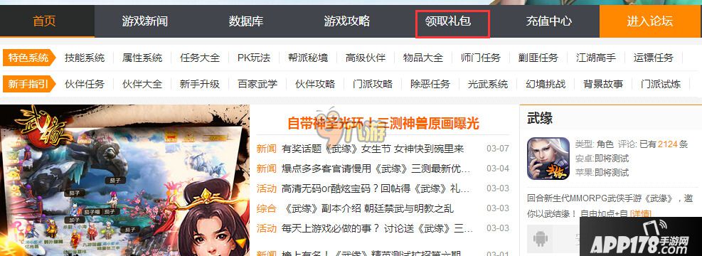 第一步,进入APP178手游武缘官网,点击礼包领取