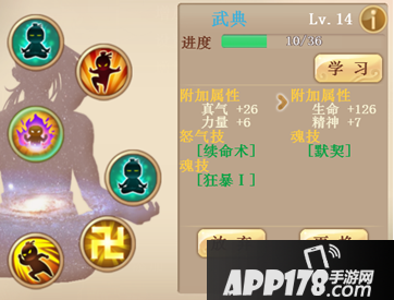 通过钻研武学,可以获得若干条附加属性、一个魂技,有概率获得愤怒技