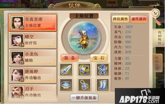 ②将伙伴放入阵位即能拥有该阵位的装备和宝石加成,这样以后就不需要每个伙伴单独升级装备和宝石了。