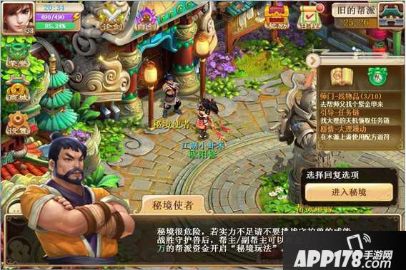 首先你需要有一个帮派(自建或加入都可),而且需要成功申请帮派驻地,才可以见到帮派秘境使者哦~