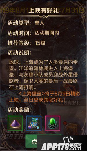 外星人进犯地球,魔都上海忍痛沉没,各位玩家勇士届时可前往各大院线观影,看感人热泪的自卫反击,看上海沉没的悲怆叹息。与此同时,万王之王3D将展开与上海堡垒的全面联动,外星人是否会打破坦格拉美亚的安宁?传说中的奇异宝藏是否会现世?各位勇士一定要密切关注主城的公告栏哦。