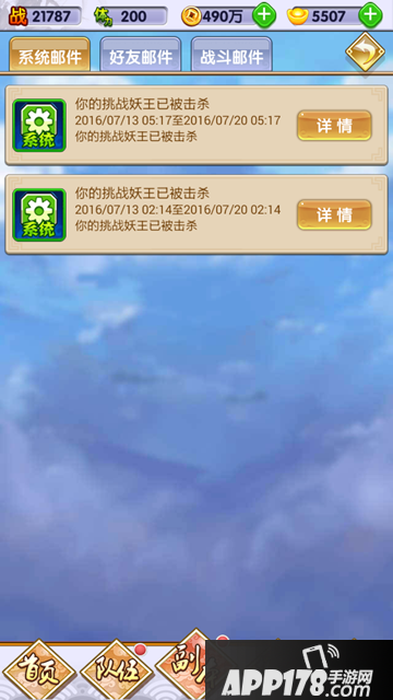 战斗邮件(玩家参与副本等发放的邮件)