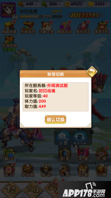 当玩家需要更换区服或者更换角色登录时,可以前往更多里找到账号切换,即可秒回登录界面,输入新账号密码,即可用新账号登录哦!