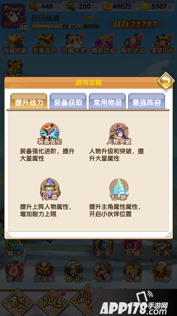 提升战力:装备强化,人物突破,丹道,仙脉