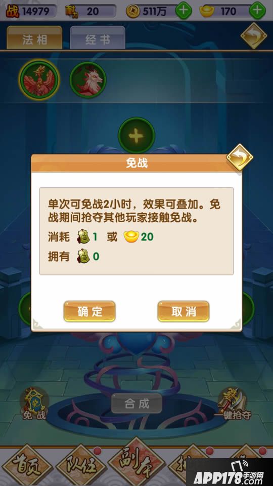 身怀绝世宝物时,可使用免战牌,免战2小时;