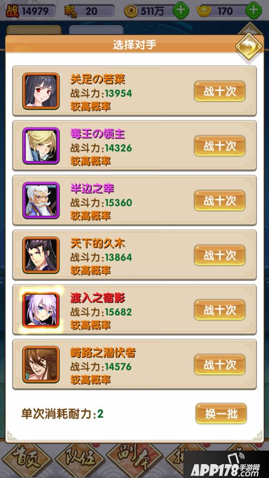选择缺少的碎片位置,可以选择掠夺对手,每次挑战消耗2点耐力;