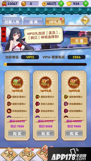 《我欲封天至尊归来》VIP一共有20级,每升一级都可以获得对应的VIP礼包购买权,每种礼包都是物超所值,特别是成为vip12后购买一个神将选择包,就可以选择孟浩或者是韩贝,强力推荐。此外VIP每天都可以领取对应的VIP福利,等级越高越给力。