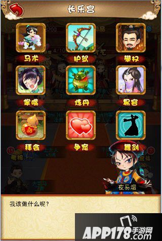 宫廷系统中,提升皇上对小主好感度的第一个关键点就是才能。宫廷系统提供马术、舞剑、争宠三个才能展示方式:对外,匈奴北犯,若是勤于练习马上技巧,展示跳过障碍物的实力马术,为抵御外敌贡献一份力,着实能解决皇上一大心病;对内,宫廷宴会,能够“一舞剑器动四方”,取悦上位者,也能让皇上欣喜连连;外才不显,若是能蕙质兰心,深谙宫廷局势,分析敌我关系,皇上必定能够对你的好感值UP!