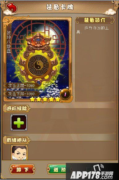 装备是游戏中玩家战斗力非常重要的补充部分,也是游戏中的重要收集要素。游戏中的装备系统由装备属性、获得途径、装备强化、装备转生四个子功能组成。吞噬需要一张主卡和若干材料卡,执行吞噬后,材料卡消失,主卡获得经验。星级、等级越高的材料卡,吞噬后主卡获得的经验越高。所有的装备卡牌都可以在强化过程中充当材料卡。