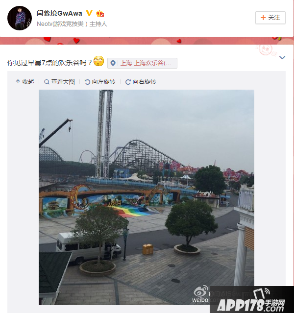 对于电竞圈明星,小编都关注了他们的微博,就在接到“线报”的第二日,就看到娃娃发了一条微博,问众人见过早晨7点的欢乐谷吗,还配了个非常拉仇恨的表情。娃娃一大早趁着人少来这个堪称情侣约会好地方的上海欢乐谷,难不成有一场浪漫的约会在等着他?
