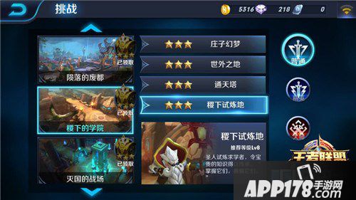 PVE冒险是《王者联盟》中一大亮点, 该冒险模式中分为三类玩法,分别是挑战、六国远征和武道大会。三种玩法各有特色,挑战模式是通过通过关卡获得胜利,武道大会是争夺排名,六国远征是不断的同英雄组合对抗通关。玩家初入游戏,等级未达到开启六国远征和武道大会的要求,只能进行挑战模式的对抗。玩家可以在第一天进入游戏熟悉英雄后,进入挑战模式通过关卡,来获取足够多的道具武装自己,领先他人一步。