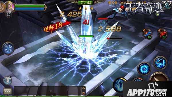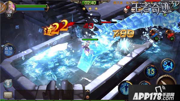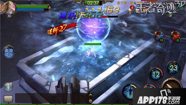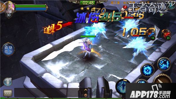 《王者奇迹3D》的角色有着不同的装备和技能,以魔法师常用的五种技能为例,点击屏幕右下角的按钮,就会使用相对应的战斗功能。要注意的是技能练就需要时间,会以黄色数字提示还剩多少秒可以使用该种技能。自动战役中系统会自动识别所需要的技能。