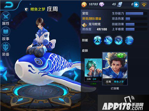 庄周本身的定位就是团队增益,除了被动【自然意志】能够保证自己的生存能力外,另外两个主要技能【化蝶】和【蝴蝶效应】,都带有减速的效果,能够很好的帮助己方英雄追击目标或脱离战团。技能【化蝶】的伤害,虽然不高,不过在线上也能够很好的对敌方进行消耗。