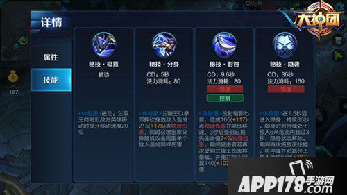 兰陵王在游戏中属于刺客类型的英雄,所以他的技能配置主要还是以秒杀为主!首先看到英雄的被动技能效果,只要附近有敌方玩家的时候,他只要朝着玩家的方向移动,就会提高百分之20的移动速度,这样的技能效果能够大大提升他的战场追击效率!再看到英雄的第一个技能,这个是兰陵王主要伤害技能,在释放之后会造成一定范围的伤害,同时会提供分身幻影的效果加强你的技能伤害!第二个技能是控制技能,只要被击中的玩家会被减缓移动速度,同时再配上你的1技能,会造成短暂的眩晕效果!大招的技能在释放之后,在1.5秒之后会进入隐身的状态,可以通过大招的效果来快速拉近和敌方玩家的对线距离,在和队友配合击杀的时候,能够起到关键性的作用!