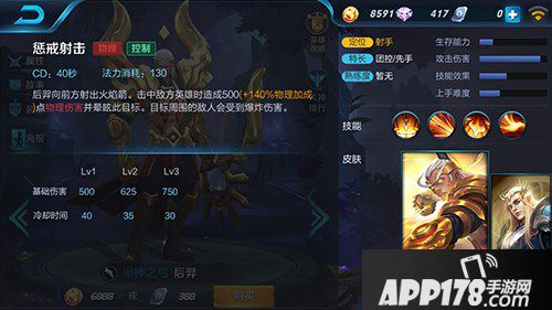 惩戒射击:向前方射出火焰箭,全图大招,击中目标造成伤害且眩晕,目标周围敌人会受到爆炸伤害。全图大招,辅助、收割利器。不用解释,基本都是有了就方一波,但是放之前要先看好敌人位置。缺点是只能走直线,容易被躲避。所以在团的时候效果更佳。