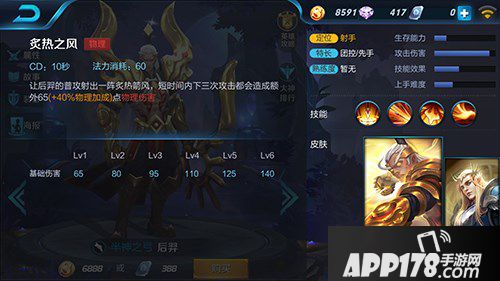 炙热之风:射出一阵炙热箭风,短时间内下三次攻击都会造成额外物理伤害。速攻的技能,作为ADC的优势就是攻速高,爆发强。在大招或者2技能之后配合释放,效果更好。