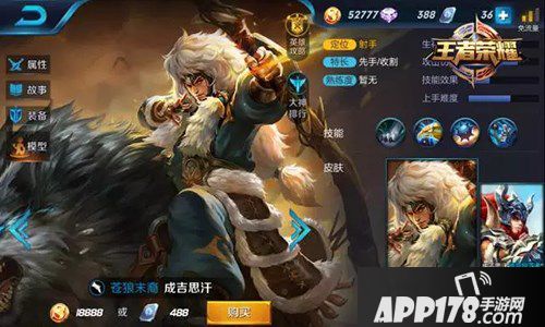 这位一代天骄最引人注目的是他是荣耀第5位有坐骑的英雄,一只萌萌的苍狼。比我们熟知的灰太狼更加健硕,最为有特色的是他的大尾巴。再看大汗一身保暖质量优越的游牧民族装束,具有代表性的裘帽, 图腾标记的弓箭,设计灵感贴切大汗原型,又具有荣耀人物帅气风格,充满游牧民的特点刻画到位。