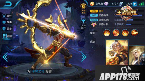 技能连招:后羿大招先手晕眩敌方单位,然后拉近自己和目标距离,开启一技能配合普攻对目标造成多段伤害并将其控制在自身攻击范围内,最后释放二技能控制和收割。