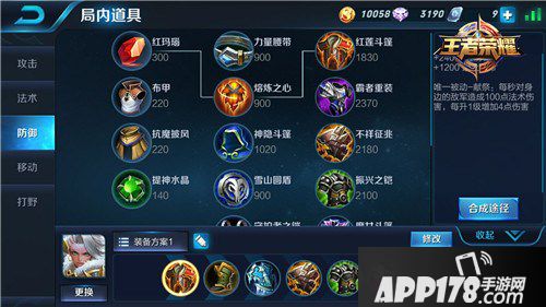 出装分析:红莲斗篷基本成为现在坦克类英雄第一件也是必出的装备之一了,坦克类英雄承担着吸收敌人伤害的重任,所以基本都是防御装,而红莲斗篷不仅提供生命值与护甲,还提供一个会对周围目标造成伤害的被动,在前期大大提高了坦克类英雄的输出能力;影忍之足的性价比很高,在前期能够给钟无艳带来不错的防御能力;冰封之心的高护甲加成和冷却缩减对钟无艳来说非常重要,提高了钟无艳的防御能力(也可以出反伤刺甲,看个人喜好);振兴之铠的性价比也是很高的,特别是在对面有AP英雄的情况下,收益会非常显著;霸者重铠所提供的高额生命值可以轻松让钟无艳的血量破万,敌人在面对这么一个厚实的肉盾时或许就会显的有些力不从了,打不动还有输出伤害是最恶心的了。
