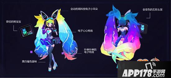 我们结合人物任性、拥有超强能力、崇尚自由的特征,设计了这位看起来有一点淘气的小萝莉,给她配上了赛博朋克风的彩色渐变头发,而为缅怀早期安琪拉的熊,我们把她的书换成了数码熊。