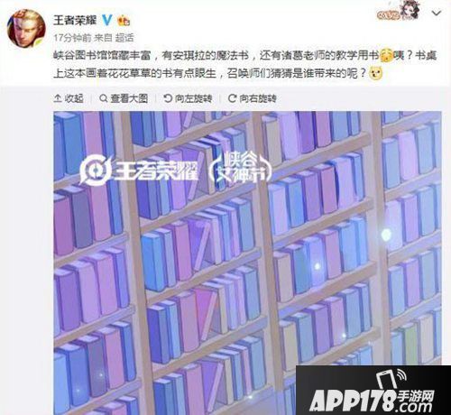 在官方发布的宣传图中,有一本画着花花草草的书,这本书的主人就是此图的彩蛋。书桌左侧摆放着四本书,分别是张良的言灵之书、诸葛亮的黄金分割率、韩信的偷鲲学、以及安琪拉的魔法书,而书本的右侧还有一块印着鱼儿的金牌。综合以上信息,这本书的主人可能是虞姬或庄周,相对来说,虞姬推出新皮肤的可能性更大,因为这是女神节海报嘛。