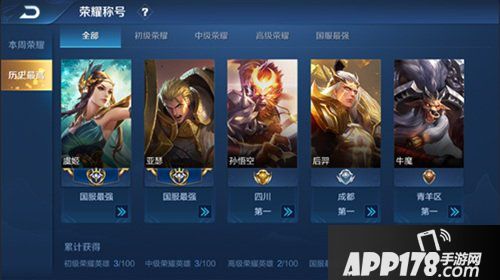 中级荣耀(市级):荣耀战力2000分以上才能获取