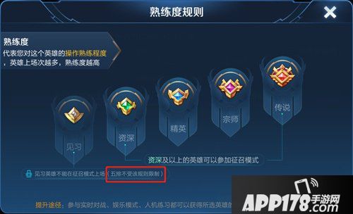 五人组队参与排位赛时不再对玩家英雄的熟练度做出限制,可以使用见习熟练度的英雄。