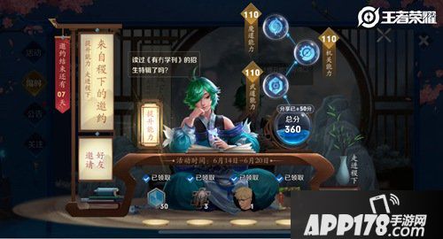 6月14日~6月20月期间,游戏内【稷下的邀约】活动正式开启!在进入稷下前,召唤师们可以来此锻炼自己,提升魔道、机关、武道能力!达到指定的分数,还可以轻松领取诸葛亮的星元部件和全新稷下头像框喔~大家赶紧去游戏参与叭!