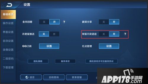 在主界面的设置页面→基础设置页面中,可以找到“举报不良语音”的选项,大部分的手机是默认开启该功能的,由于举报不良语音功能对手机性能有一定的损耗,小部分手机默认关闭了该功能,如果您需要开启,请在设置界面进行手动开启。
