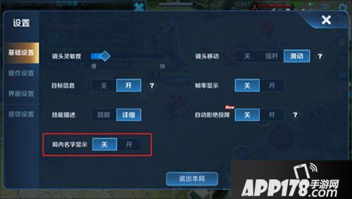 玩家可在设置面板中设置是否在局内显示玩家的姓名。