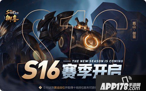 S16赛季达到黄金段位并取得10场排位赛胜利可领取S16赛季专属皮肤:盾山-御銮。