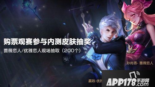 除了能够亲临现场见证世冠冠军加冕之外,到场的召唤师们也将有机会获得诸多好礼。200个珍贵的内测皮肤——孙尚香“蔷薇恋人”、嬴政“优雅恋人”将从购票并前往现场观赛的观众中随机抽奖发放,期待召唤师们的到场!