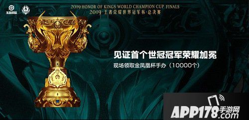 金凤凰杯是世冠总冠军荣耀的象征,总决赛现场将为大家准备1万个总冠军同款金凤凰杯模型手办作为纪念品,玩家入场即可免费领取,送完为止。首个世界冠军杯冠军诞生需要各位一同见证!