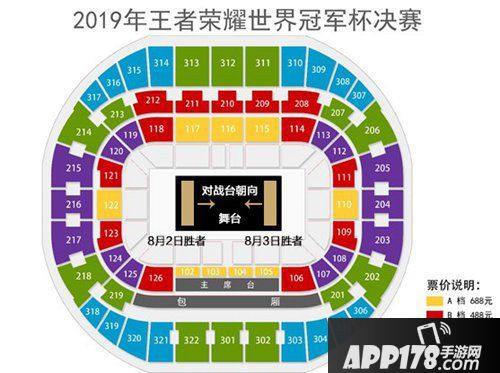 2019年王者荣耀世界冠军杯总决赛门票价格为:688元、488元、388元、288元、188元。