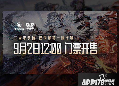 KPL三周年专场温情来袭,2019KPL秋季赛9月11日正式开赛,揭幕战eStarPro vs RW侠,重演世界冠军杯总决赛之战!而大家期待的KPL三周年专场暨2019KPL秋季赛第一周门票售卖将于9月2日12:00正式开启。各位召唤师们可前往王者荣耀官网、王者营地、游戏内赛事专区进行购票,前往现场观赛为你支持的战队和选手加油助威。