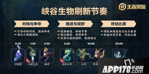 设计目的:在周年庆的新版本中,也加入了一些新生物,更为清晰的构筑起峡谷的几个不同阶段~局势会从前期更稳定的对线,逐步过渡到激烈的爽快团战中。而这些新的生物将为大家提供丰富的团队战术。
