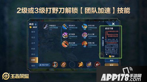开局10分钟,购买了2级或3级打野装备的英雄将获得一个新的主动技能【团队加速】:3秒内逐渐提速到100%,一共持续5秒(CD120秒)。当攻击敌方或者受到敌方英雄攻击后,加速效果消失。