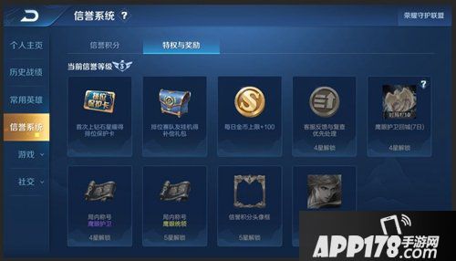 (在特权与奖励页面会详细展示召唤师现在拥有或未拥有的特权和奖励)