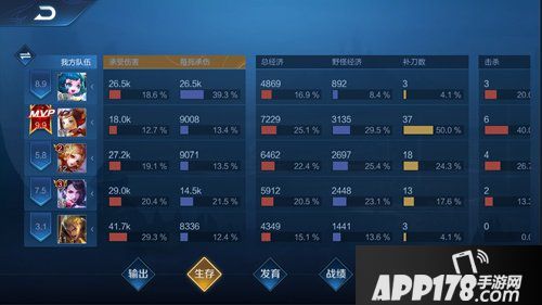 在最后的结算数据界面,我们添加了更多维度的数据,新增的数据有:经济转化率,每死承伤,野怪经济,补刀数,控制时长,治疗量,对防御塔伤害