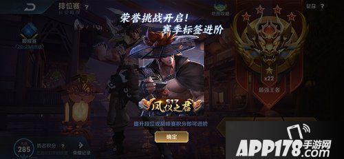 每个赛季玩家的最高段位达到最强王者时,会获得荣誉挑战任务,完成任务可对赛季皮肤标签进阶