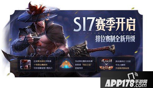 S17赛季达到黄金段位并取得10场排位赛胜利可领取S17赛季专属皮肤:夏侯惇-朔风刀。