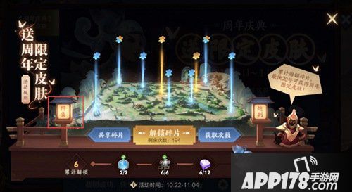 【送周年限定皮肤】活动已陆续开启。累计解锁18个峡谷回忆碎片,即可获得四周年限定皮肤:上官婉儿-梁祝。