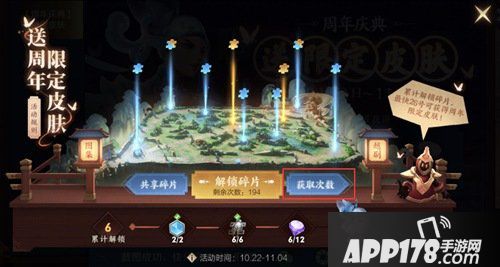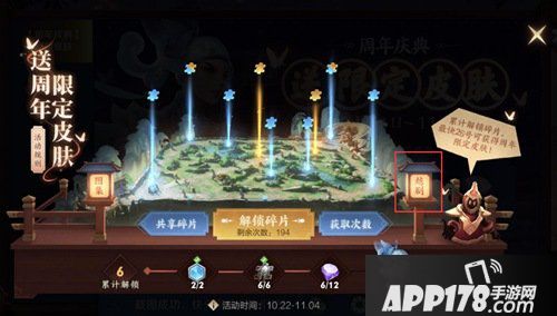 A 在活动主页点击下方【解锁碎片】,当剩余解锁次数足够时即可随机解锁出一张碎片。