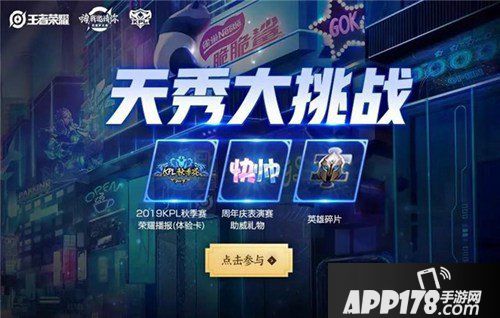 王者荣耀周年庆惊喜福利等你来拿,10月23日-10月28日,游戏内参与天秀大作战,完成登录,对局,观赛任务即可开启宝箱,概率获得KPL周年庆表演赛助威道具,钻石,铭文碎片,英雄碎片,KPL秋季赛荣耀播报3日体验卡。