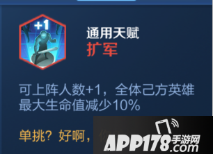 扩军刚好是跟精英相反,可以增加一个人口,但是生命值减少。这个效果等于是让玩家提前进入到9人口,能够提前做好阵容布局。虽然是减少最大生命值,但是这个效果并不会太明显,因此可以忽略,玩家能够利用好这多一个人口就可以尽快完成核心阵容的搭配。