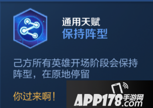 保持阵型是通用B级天赋,这个天赋技能主要是保持自己的开场阵容不用移动。这个效果看上去没有什么用,但是在实战中效果还是很不错。因为玩家安排阵容之后,开战瞬间会自动寻找目标进行攻击,而前排战士会进入到敌人的阵型中间,从而忽视自己的后排,很容易被敌人刺客偷袭。而保持阵型就是让己方英雄不动,即使对方刺客过来偷袭也被己方战士拦截,因此不会那么容易被克制,所以这个天赋比较克制刺客流阵容。
